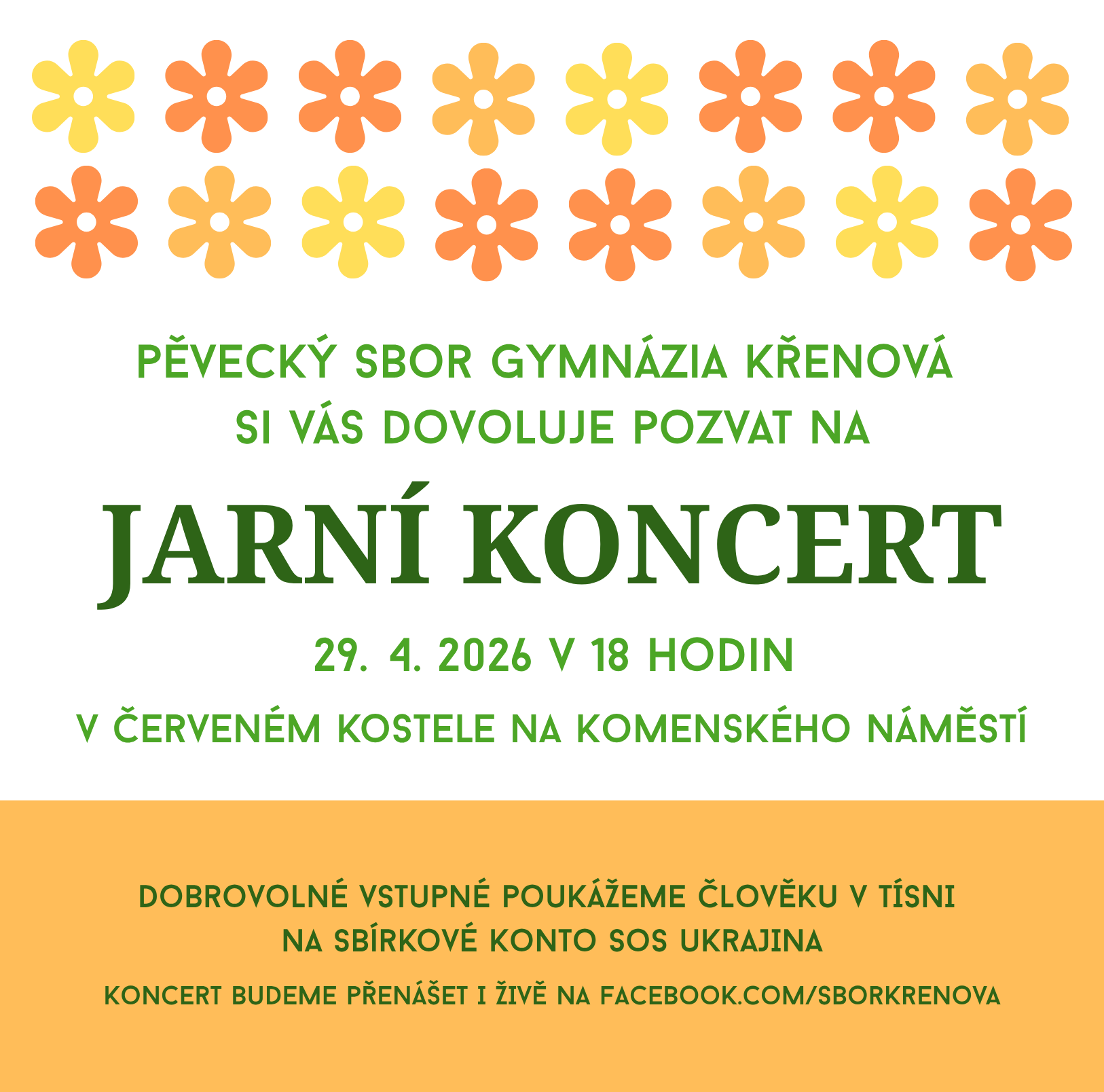 Koncert budeme přenášet i živě přes facebook.com/sborkrenova