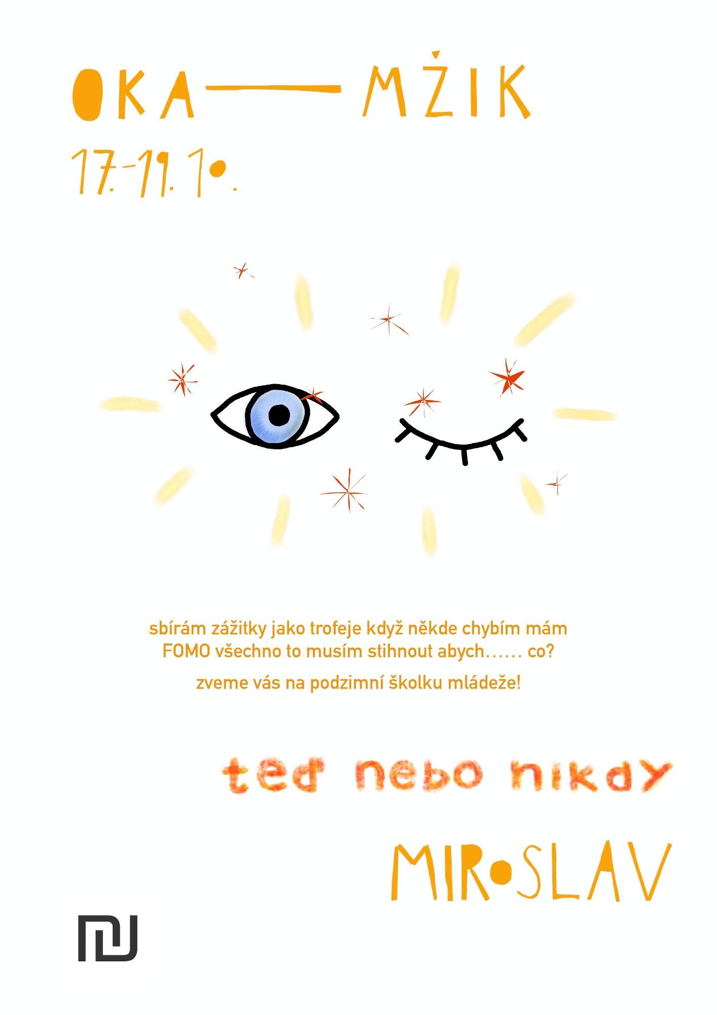 6 Podzimní školka mládeže bude 17. až 19. října v Miroslavi s tématem Okamžik – sbírám zážitky jako trofeje; když někde chybím, mám FOMO (Fear of Missing Out, strach ze zmeškání); všechno to musím stihnout, abych…… co? Přihlašování je možné do 14. října. Další informace najdete na nástěnkách, na fb a insta EMBS (Evangelická mládež Brněnského seniorátu).