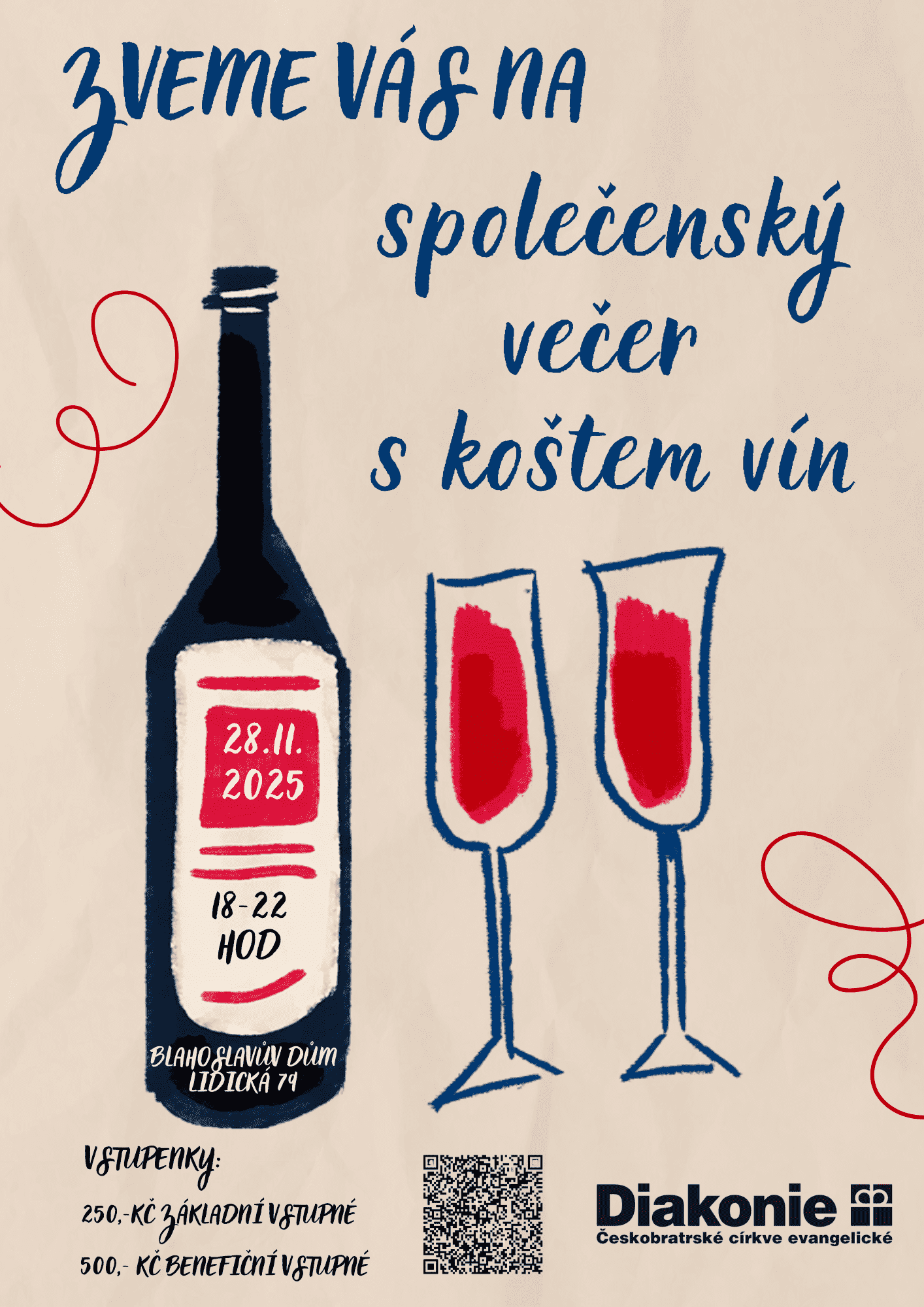 8 28. listopadu proběhne v Blahoslavově domě Společenský večer s koštem vín. Zve nás k němu Diakonie. Vstupenky lze koupit přes QR kód, který najdete na plakátu. Případně jej dostanete ve farní kanceláři.
