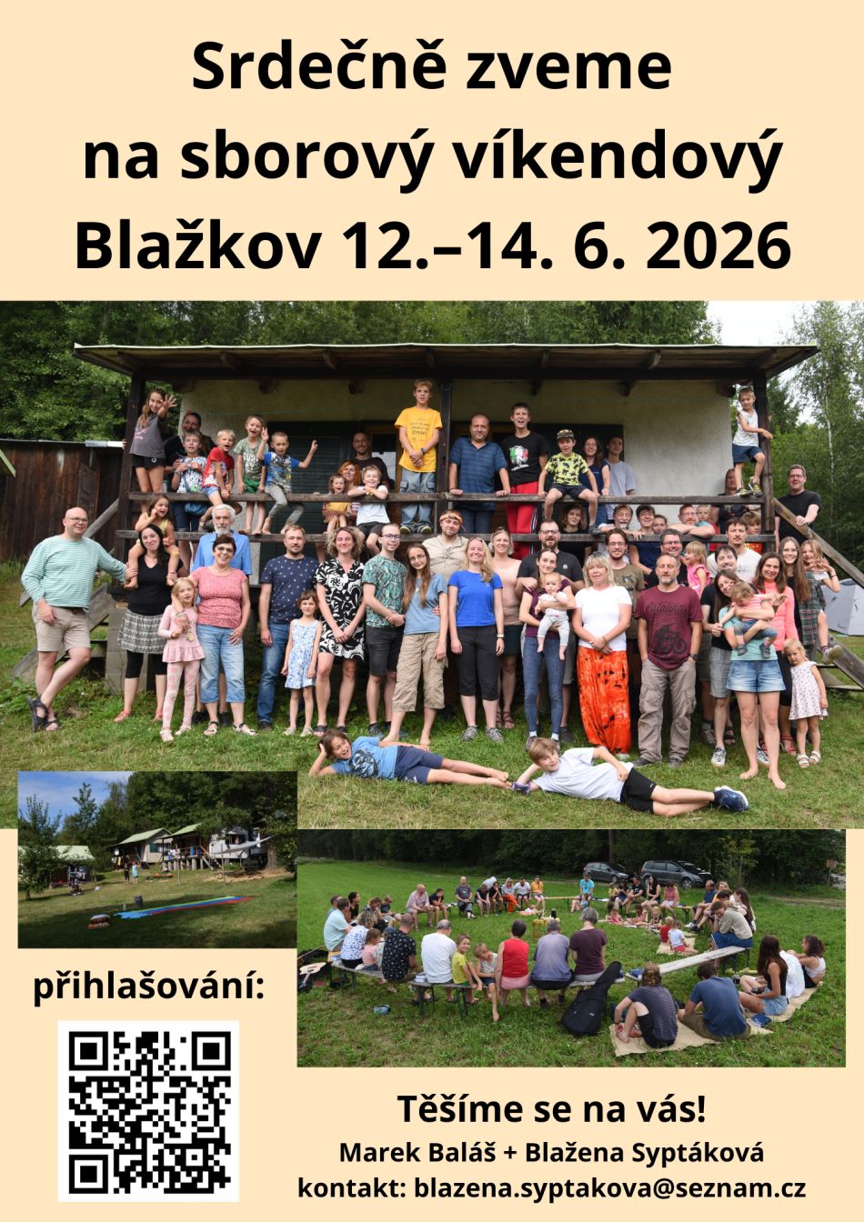 7 Od 1. do 8. srpna chystáme letní sborový pobyt na Blažkově. Můžete se na něj hlásit rovněž do Velikonoční neděle 5. dubna přes přihlašovací formulář, kde najdete další informace.