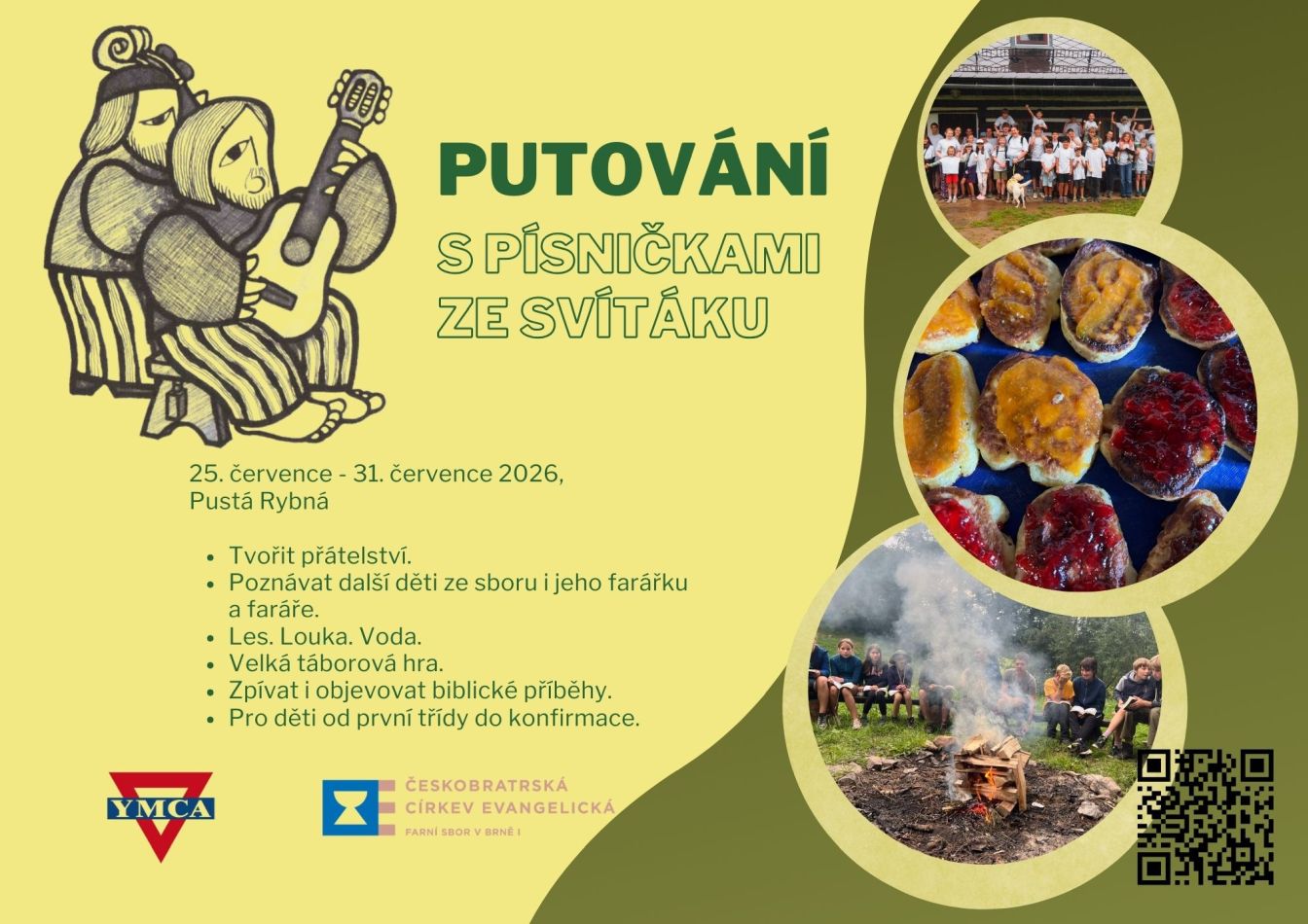 11 Od 15. do 25. července 2026 se uskuteční v součinnosti s Brněnským seniorátem tábor YMCA na Blažkově pro děti od 6. až 9. třídy. Bližší informace najdete na plakátu v příloze zpráv nebo na nástěnkách.