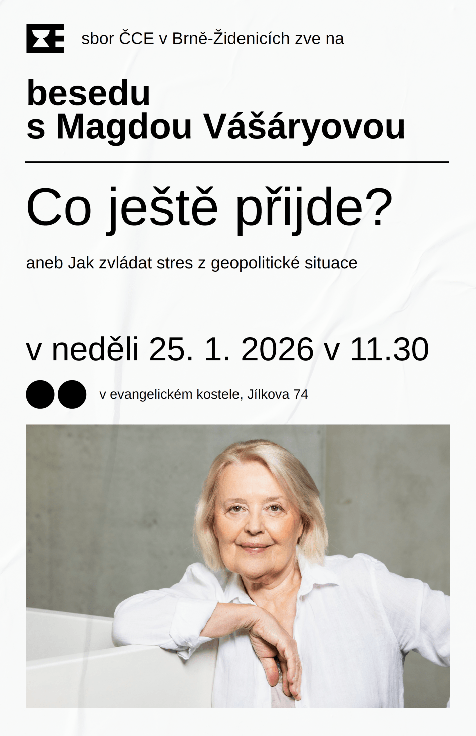 5 Ze Židenic nás zvou na 25. ledna v 11.30 na besedu s paní Magdou Vašáryovou na téma Co ještě přijde? aneb Jak zvládat stres z geopolitické situace.