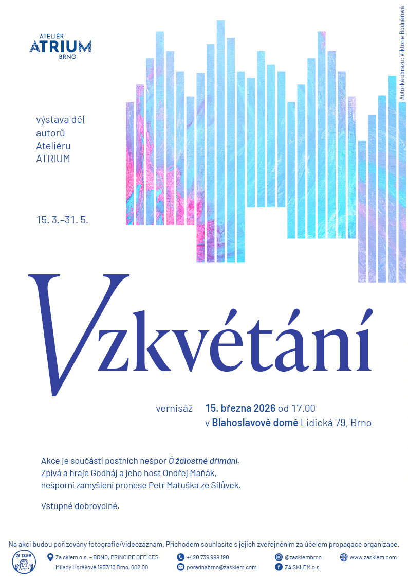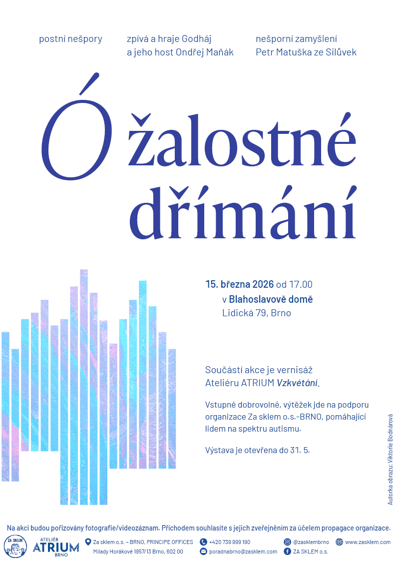 9 Sbor v Blahoslavově domě nás zve k vernisáži výstavy autorů Ateliéru ATRIUM s názvem Vzkvétání a také na postní nešpory O žalostném dřímání. Zpívá a hraje Godháj a jeho host Ondřej Maňák. Obě akce se uskuteční 15. března od 17.00 hodin v Blahoslavově domě na Lidické.